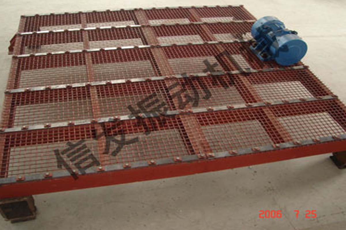 振動(dòng)篦板是一個(gè)高頻振動(dòng)的格柵,將其放置在礦槽上部,可防止因凍結(jié)或銹結(jié)成大團(tuán)的屑狀或塊狀物料進(jìn)入礦槽,否則大塊物料會(huì)在礦槽下部造成堵塞。由于格柵的高頻振動(dòng),在防止大塊物料進(jìn)入礦槽的同時(shí),屑狀、塊狀的正常粒度物料能迅速落入礦槽,不會(huì)在格柵上堆積,對(duì)一些粘結(jié)強(qiáng)度不大的結(jié)塊還能起松散、碎塊作用,是較理想的礦槽上部設(shè)備。振動(dòng)篦板還可用于鑄件的落砂等其他用途。