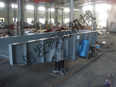 ??機(jī)器由箱體、振動電機(jī)、柵條排和彈簧減振裝置等四部分組成。箱體為一剛性結(jié)構(gòu),內(nèi)測 與物料接為雙臺階式,間隙呈楔形以利徘料,柵條材質(zhì)為耐磨高錳鋼。減振裝置采用優(yōu)質(zhì)螺旋 彈簧。
