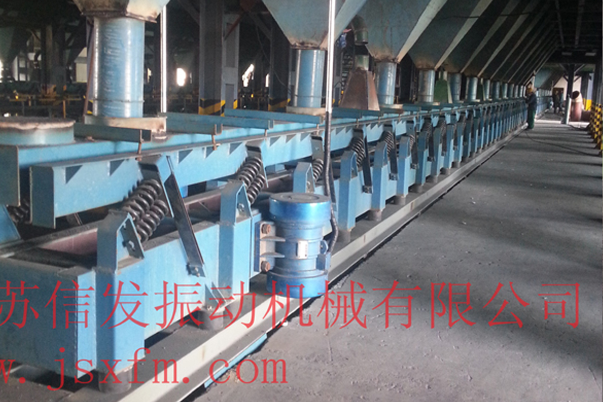慣性振動(dòng)熱料輸送機(jī)是一種兼有鎖風(fēng)功能的長距離振動(dòng)輸送機(jī)設(shè)備,采用兩臺振動(dòng)電機(jī)作為激振動(dòng)源,運(yùn)用自同步原理,兩臺振動(dòng)電機(jī)反向轉(zhuǎn)動(dòng),使輸送機(jī)底部平衡架產(chǎn)生往復(fù)振動(dòng),經(jīng)過主振簧與導(dǎo)向板簧的作用,帶動(dòng)上部輸送槽振動(dòng),從而達(dá)到輸送物料的目的。
